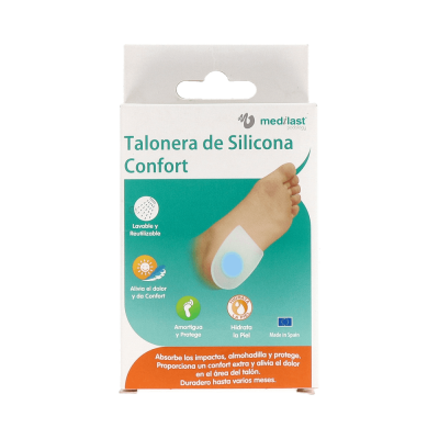 ¿Te rozan los zapatos por culpa del talón y quieres protegerlo? ¿Te duele la fricción con cualquier tipo de zapato? Prueba la talonera de silicona de Medilast. La talonera Confort de silicona de Medilast está diseñada para el espolón de calcáneo. Fabicada con dos densidades de silicona extra-blanda en el espolón central, con cazoleta. Características: Lavable y reutilizable. Totalmente adaptable. Color blanco. Talla S. *Por motivos de higiene, no se aceptarán cambios ni devoluciones de este producto. Proporciona confort y relax en el talón gracias a Medilast.
